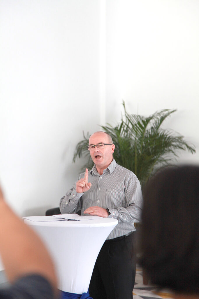 Production Manager, Kevin Segard, enjoys a well deserved break from the daily routine. The event was attended by 65 clients, friends and officials. 15 clients made the trip from Australia and Japan.